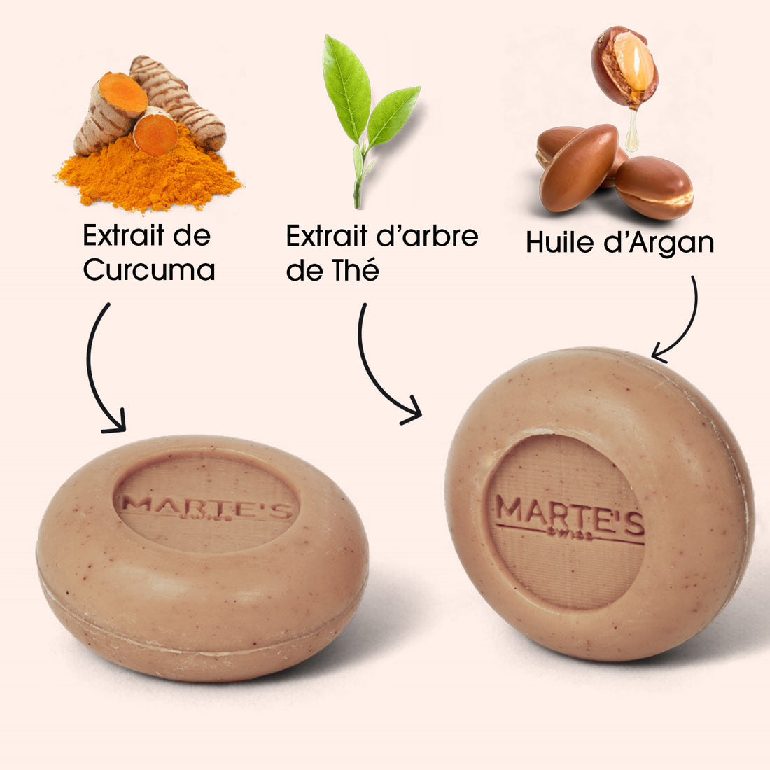 SANS PARFUM, AU LAIT D’ÂNESSE BIO, CURCUMA BIO, TEA TREE (HUILE ESSENTIELLE D’ARBRE À THÉ) ET HUILE D’ARGAN.